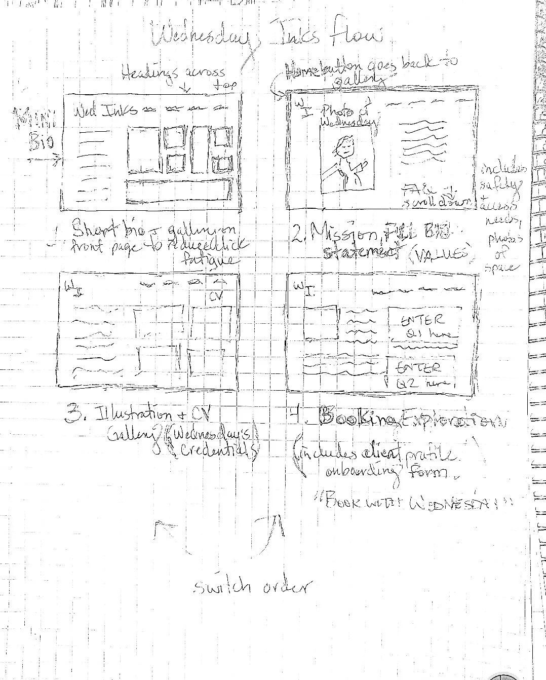 I began by prototyping at the most essential level, first sketching, then developing basic wireframes, and developing a more dynamic wireframe flow
