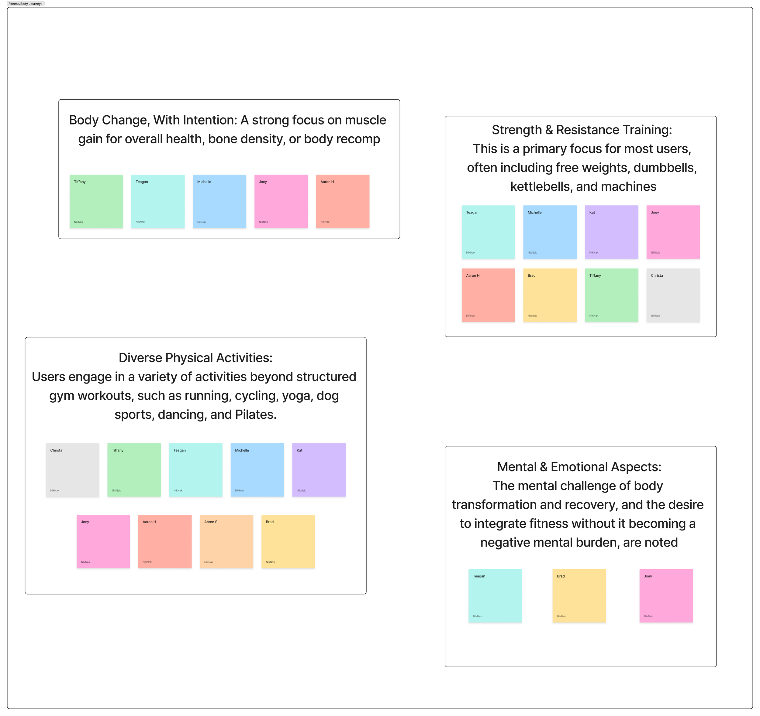 Notably, users engage in a variety of activities beyond structured gym workouts, such as running, cycling, yoga, dog sports, dancing, and Pilates. The app needs to speak to the "Gym Nerd" and the "Dog Walker" with equal respect.