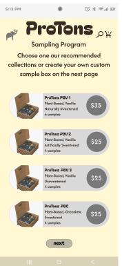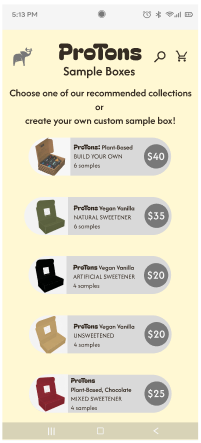 sampling program: observe how users explore matched protein options to choose proprietary or customized sample packs for at-home testing