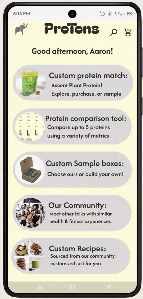 For this case study, I wondered: how do we make protein powder discovery fun, validating, and less stressful?